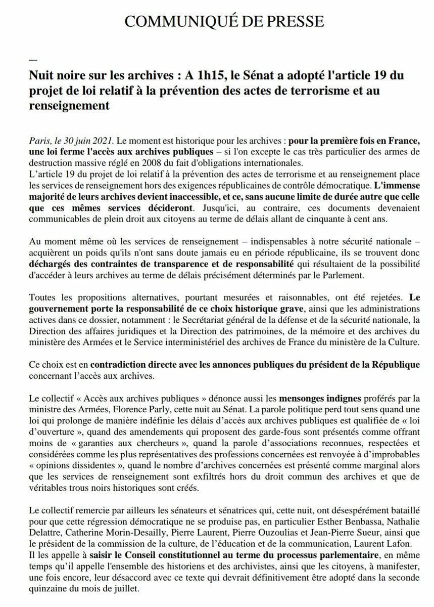le Sénat adopte l’article 19 d’un projet de loi fermant l’accès aux archives publiques !