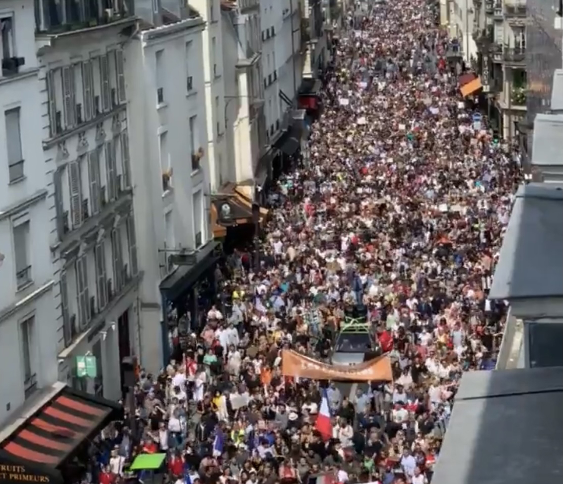 404_Not_Found @4_04_Not_Found NOW - People chanting "Liberté" in Paris as they protest against mandatory vaccinations of health care workers and vaccination passports on Bastille Day, a national holiday in France.