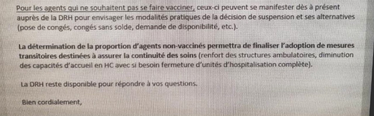 Cinquième bonne nouvelle : Me BRUSA fera demain soir (jeudi) un live pour expliquer plus en détail la situation dans le monde du travail (obligations des employés et des employeurs, droit de retrait, arrêts maladies, contrôles, sanctions, passe sanitaire, ….)