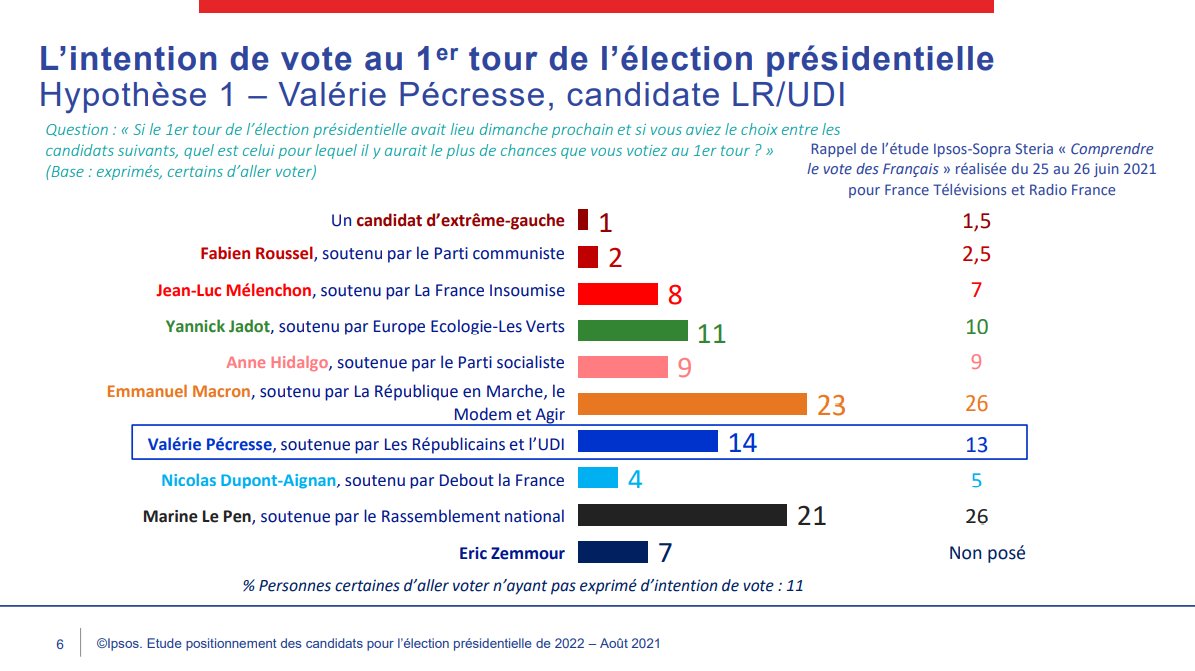 Intention de vote du 26 août 2021 -sondage Ipsos pour BFM TV