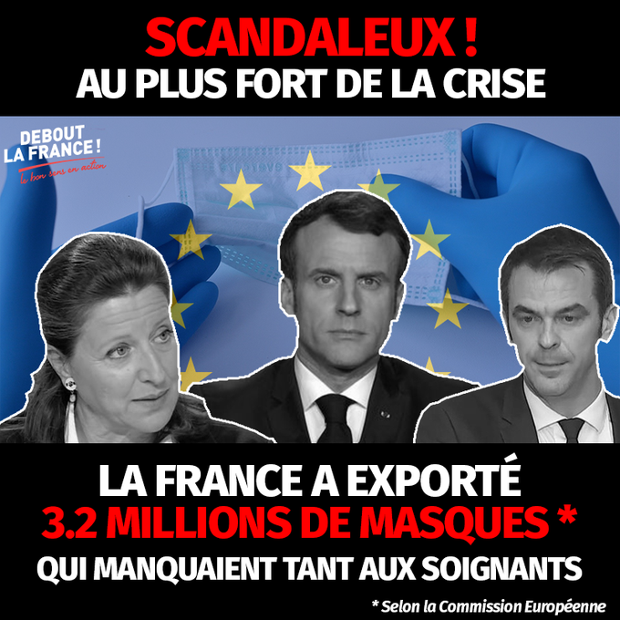 N. Dupont-Aignan @dupontaignan · 30 mai 2020 Scandale d'Etat ? Un communiqué de la Commission européenne révèle que la France aurait exporté 3 millions de masques durant la crise... Si c'est le cas, l'Etat aurait carrément accentué la pénurie de masques qui a causé tant de victimes parmi nos soignants et dans les EHPAD !