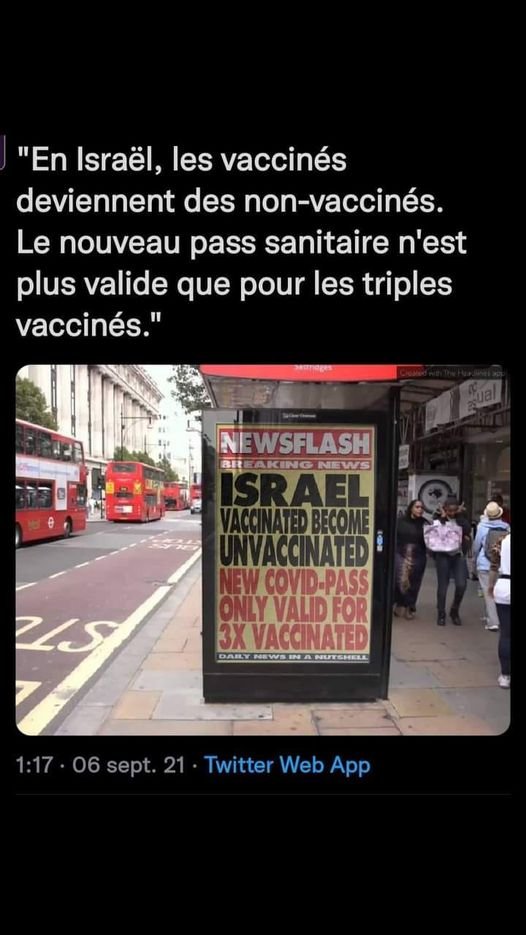 bedeich florence @bedeichflorence · 13h Israël : Index pointant vers la droite25.9.20 : Zéro vacciné. 708 malades graves Index pointant vers la droite 23/09/21 : 3 millions vaccinés 3 doses, 6 millions de vaccinés toute dose confondues.. 703 malades graves Alors le vaccin est toujours une réussite ???