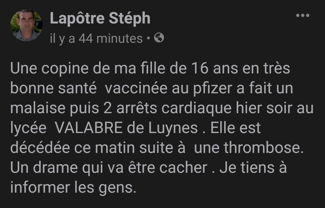 La vie c'est aussi se promener en pleine nature, recevoir des amis chez soi, jouer avec ses enfants, cultiver son jardin, pratiquer des activités manuelles.. ... être créatif, discuter entre nous, nous entraider, rire ensemble, s'apprécier, s'aimer. Cette vie-là est à portée de main, nul besoin de pass. C'est la vraie vie d'avant, la vie d'aujourd'hui et la vie de demain. Les grands décideurs ont raison sur une chose : oui, un monde d'après est nécessaire. Oui un "nouvel ordre mondial" - pour reprendre leurs termes - est impératif. Et dans l'idéal, ce monde se fera... sans eux. Nous traverserons cette période trouble tous ensemble, nous, les résistants et les éveillés. Et nous informerons, du mieux qu'on le pourra, ceux qui voudront bien entendre les vérités. Nous avons les études, les chiffres (les vrais), les témoignages, la pharmacovigilance... ... les soignants non corrompus, des avocats, des élus, certains grands chercheurs et prix Nobel de notre côté. Nous sommes des millions, dans le monde entier, à connaître l'ampleur des mensonges. Ne lâchons rien. Restons confiants. Et soudés. »