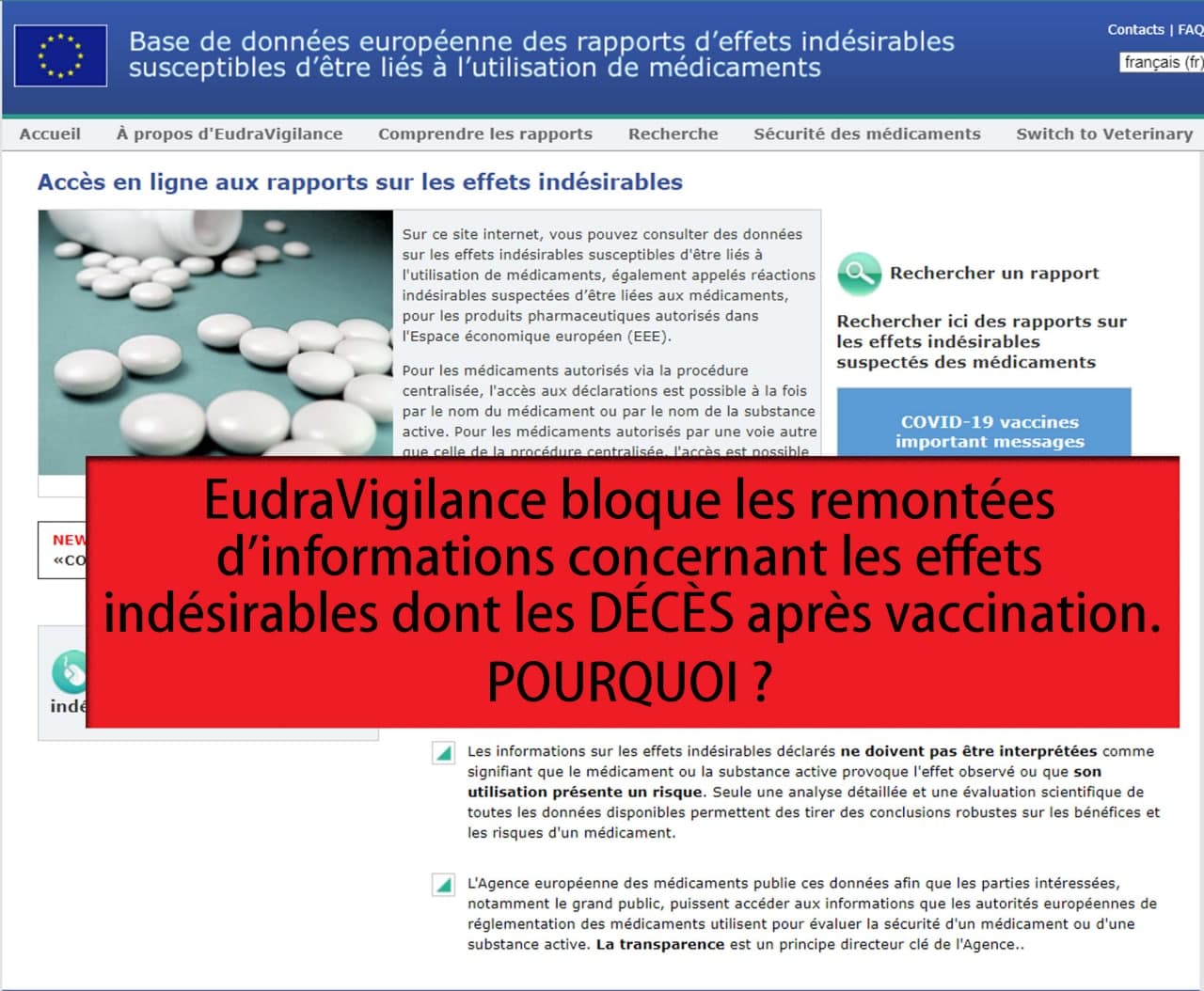 En France le récit standard des médias grand public informe le public qu'il y a peu ou pas de risque associé aux vaccins COVID-19. Pourtant, les données du monde réel révèlent qu'il y a un nombre disproportionné d'événements indésirables signalés à partir des vaccins COVID-19 par rapport aux autres vaccins.