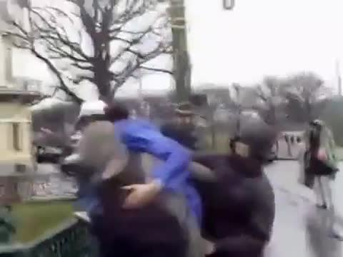 BAN @BAN05063867 · 19h Un agent de santé malodorant faisait de la publicité avec un drapeau de vaccin sur un pont. L'hygiéniste encourageait la vaccination pour les enfants sans défense, c'est alors que trois gars se sont mis sur son chemin...