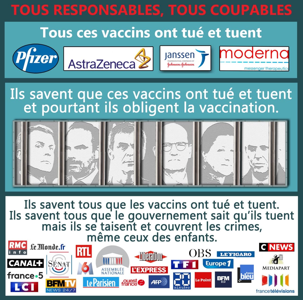 Ecoutez tous ces guignols de service, ils sont pitoyables, ils ne font tous qu'obéir à leur maître , tous ces faux toubibs de service, ces types qui se disent journalistes ils sont tous soumis aux puissances suprêmes de l'argent . Beaucoup d'entre eux quand tout ça sera fini pensent qu'ils pourront continuer à nous bourrer le crâne de leurs insipides méssages. Non ! les mecs vous serez balancés dans les oubliettes du néant , plus personne ne pourra supporter de voir vos tronches de vendus à la télé .