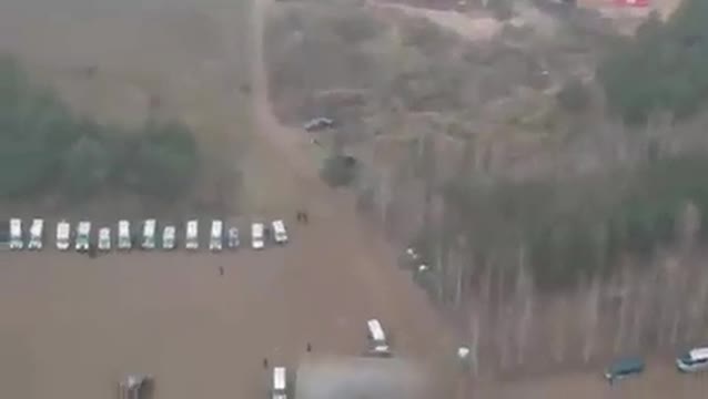 des colonnes de « réfugiés » progressent à pied sur l’autoroute biélorusse en direction de la frontière