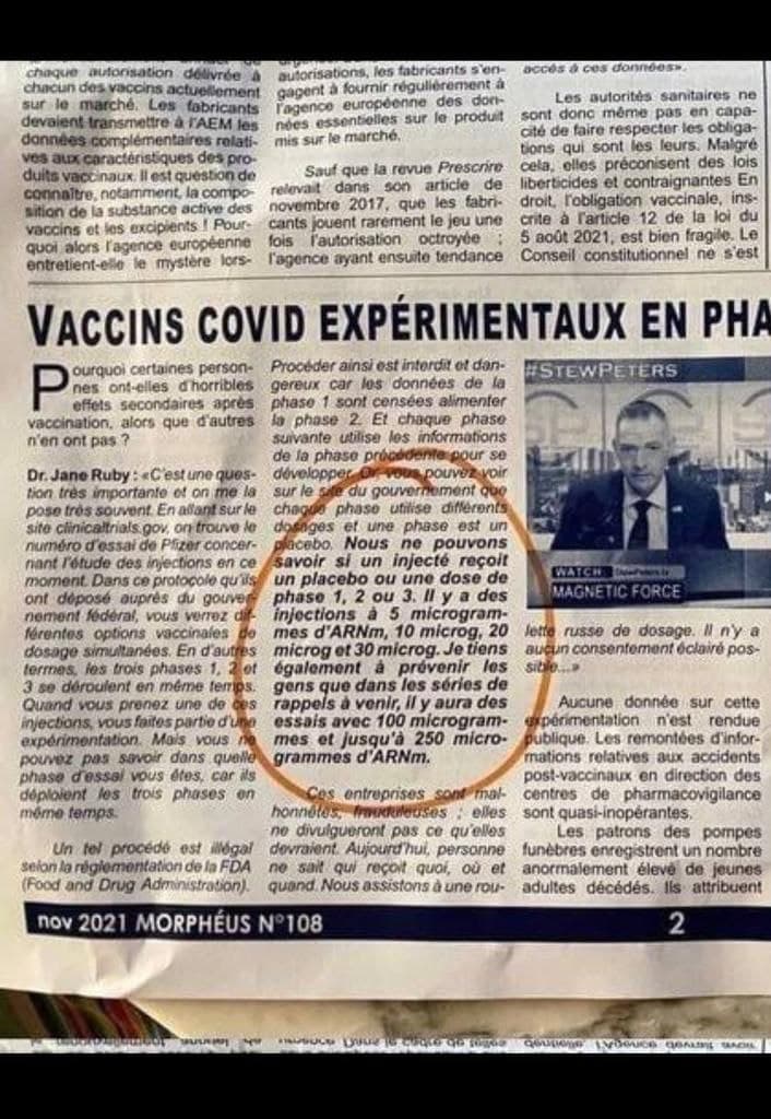 Désormais, les mondialistes du Deep State incitent frénétiquement la prise d’une troisième injection de rappel. Voici le conseil d’Eads (Le toubib) : « Ne prenez pas le rappel, absolument pas, et je ne recommande pas non plus le vaccin contre la grippe car l’amélioration de la dépendance aux anticorps (ADE) sera aggravée par le vaccin contre la grippe. »