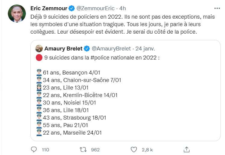 Enfin espérons que la droite de Zemmour pourra trouver une issue victorieuse, les français ont assez souffert des derniers mandats : un Chirac qui a laissé pisser le mérinos pendant tout son mandat il n' a rien fait pour lutter contre les fléaux qui nous tombent aujourd'hui , un François Hollande qui a humilié notre pays par la mesquinerie, la faiblesse de son action et l'insignifiance de sa personnalité, et enfin un Macron qui a été un traître à la France et a montré qu'il n'aimait les français .