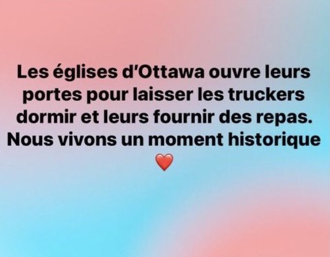 Les Canadiens nous font une sacrée démonstration c'est beau à voir. Apparemment il y a pareil qui se prépare partout en Europe, à voir... Vous savez bien que je ne considère pas que manifester va changer quelque chose, par contre, un effet de masse d'une telle ampleur peut vraiment faire une chose importante. Et cette chose c'est montrer à la population que la majorité des gens ne veulent pas de cette dictature, et c'est très important. Car une fois que la population comprend que la majorité ne veut pas de ce totalitarisme, leur jeu est fini. Ils ont passé des décennies à mettre en place un système qui vous fait croire qu'ils sont tout-puissants. Ce n'est pas vrai du tout, et de telles actions peuvent faire prendre conscience de ce mensonge à la population. Quand je vous dis que le réveil de la population est en cour, les gens prennent conscience petit à petit qu'ils doivent faire quelque chose. C'est lent parce que nous sommes beaucoup face à une énorme machine. Mais ce monde est en train de tomber et merci aux Canadiens de nous prouver que cette cabale est bel et bien sur sa fin. Prenez bien soin de vous les amis. Le monde dans lequel nous entrons est magnifique, ne l'oublié jamais. Nous sommes tous des êtres de lumière venu ici pour créer un monde magnifique.