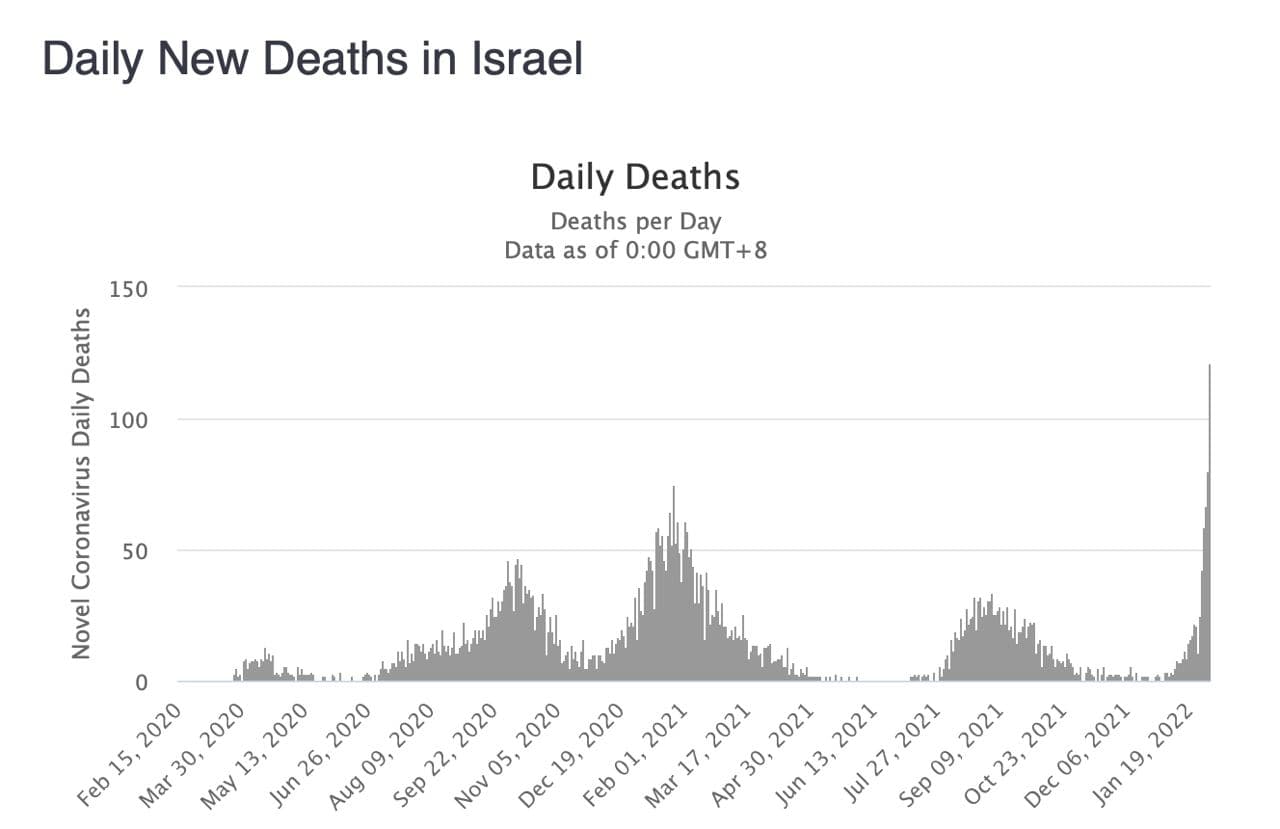 2. Alors qu'Omicron est devenu moins létal, et AUCUN médecin, même de plateau TV ne pourra le contredire, Israël , le pays aux 4 doses prouve que les vaccins facilitent l'infection, les formes graves, les morts ! Ce sont juste des FAITS, pas des mensonges de VERAN devant des journalistes aux ordres !