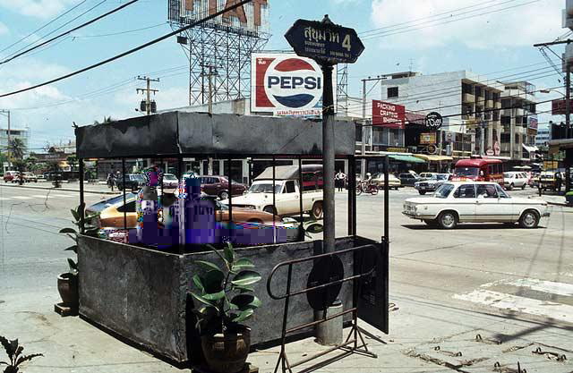Sous la rotissoire il doit faire 50 ° , dehors 35° sur le macadam .les policiers se sont equips d'un gros ventilateur pour chasser l'air chaud .