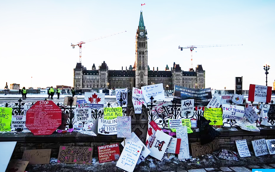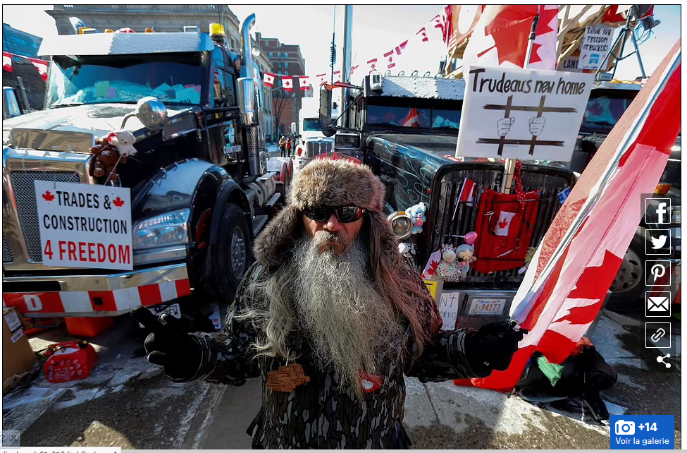 Nouvelles compliquées du front canadien : Vous l'avez vu, Trudeau veut invoquer ce qui s'appelle là-bas «la Loi sur les mesures d'urgence», anciennement «Loi sur les mesures de guerre», qui n'a jamais été appliquée du 1988. L'application de cette loi augmenterait temporairement les prérogatives de la police et de la Gendarmerie royale du Canada, en plus de permettre au gouvernement de geler les comptes bancaires des personnes réputées impliquées dans les blocages. Mais cette loi doit être présentée au parlement avant de pouvoir être appliquée. Plusieurs spécialistes canadiens du droit remettent en cause la constitutionnalité de cette mesure du gouvernement fédéral, rappelant entre autres que pour pouvoir instaurer cet état particulier du droit, il faut que certains critères soient remplis, notamment concernant l'intensité d'une «crise nationale». Ces observateurs estiment que la situation actuelle, aussi pénible soit-elle pour le gouvernement, ne justifie pas une mesure aussi radicale. Nous verrons. Trudeau est le Premier ministre national, dans un pays découpé en provinces ayant chacune leur propre Premier ministre provincial. Si la loi est décrétée, elle s'appliquerait à l'ensemble des provinces. Or, pour le moment trois provinces ont déjà fait savoir qu'elles étaient contre cette mesure : Alberta, Manitoba et, plus étonnant, Québec (étonnant parce que Lugault, le PM de cette province, est un covidiste qui raffole des mesures sanitaires habituellement). Tamara Lich, qui fait partie des organisateurs du convoi de la Liberté, a fait savoir ce lundi que le blocage continuera, promettant de résister, loi d'urgence ou pas. Il est évident que les camionneurs, qui voient ce qu'il se passe à l'échelle internationale, qui voient les mouvements qui naissent partout dans le monde à la suite du leur et inspirés par le leur, doivent être galvanisés comme jamais, conscients de jouer un rôle devant l'Histoire. Une partie en tout cas de ces gens ira jusqu'au bout. Pour le moment, Trudeau a fait des annonces mais rien n'est acquis. Avant de pouvoir appliquer des lois d'exception, il devra affronter plusieurs obstacles politiques et juridiques.