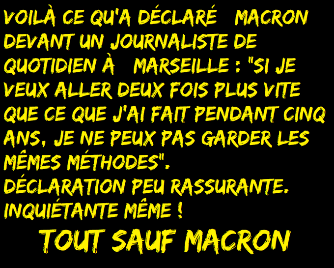 "Macron est faible avec les forts et il est impitoyable avec les faibles, c'est un lèche-bottes avec ceux qui sont au dessus de lui et c'est un tyran avec ceux qui sont en dessous ..."