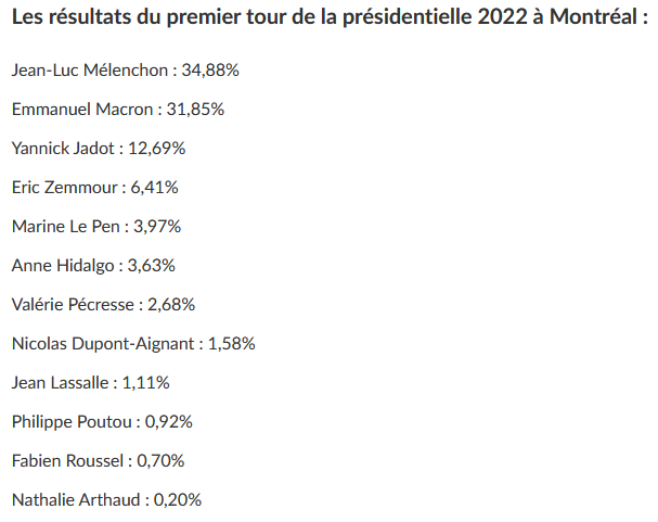 Les Français des États-Unis ont voté ce samedi 9 avril 2022 pour le premier tour de l’élection présidentielle. Comme en 2017, ils ont massivement voté pour Emmanuel Macron, lui renouvelant leur confiance, plaçant très loin derrière le candidat Mélenchon, suivit de Yannick Jadot. Nous aurions pu annoncer ces résultats dès la nuit dernière mais par déontologie journalistique, nous les divulguons à l’heure où la France publie les premières estimations. Gage de notre sérieux.