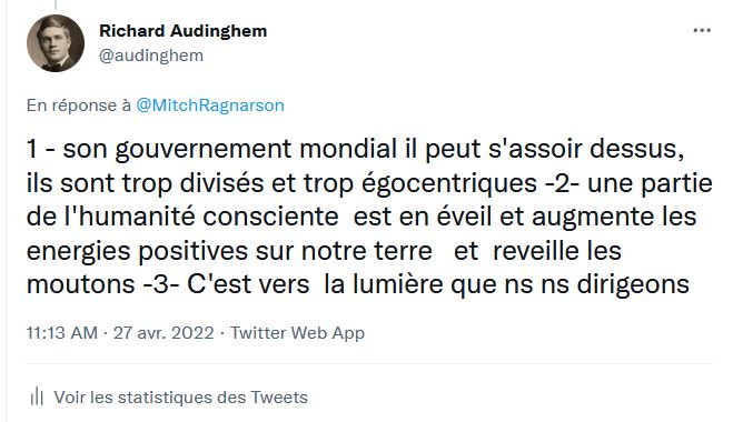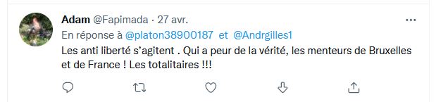 Le 28 avril à 07:43 par edelweiss - Les injections sont conçues pour que les receveurs produisent des variants à l’infini, d’où la nécessité de répéter périodiquement ces injections afin de perpétuer le processus de création de variants et de contamination qui justifie les prétendus rappels.. Ceux qui ont mis le doigt dans ce processus diabolique sont désormais enchainés au projet dictatorial du passeport numérique (prétendu sanitaire) qui permettra un fichage des données de chaque individu auquel sera attaché un QR code, sésame incontournable pour avoir une existence normée. Je me suis heurté à une réaction très significative d’un proche injecté trois fois qui se plaignait d’avoir attrapé une nouvelle fois le covid. Je lui faisais part de mon étonnement en lui faisant remarquer qu’il devait normalement être protégé compte tenu de son statut de triple dosé.. Mais ce dernier m’a rétorqué - "oui mais tu comprends, avec tous ces non vaccinés, on n’est pas en sécurité"... Une synthèse du cauchemar orwellien que nous sommes en train de vivre..