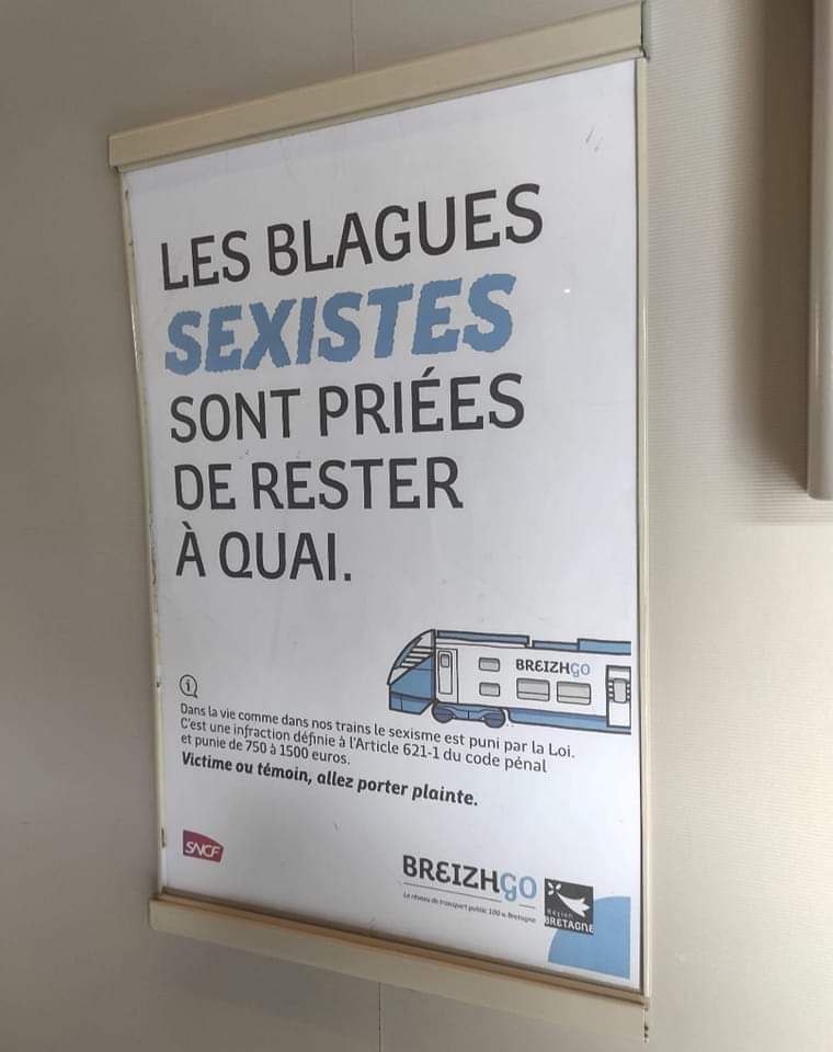 Chaque panneau est l'occasion de rappeler l'existence d'une loi ou d'une autre. Partout, tout le temps, ils te rappellent que tu es surveillé, observé, fliqué, et que chaque mot qui sort de ta bouche a intérêt d'être rigoureusement filtré. Surveillance et intimidation partout. L'enfer woke de la guerre permanente de tous contre tous.