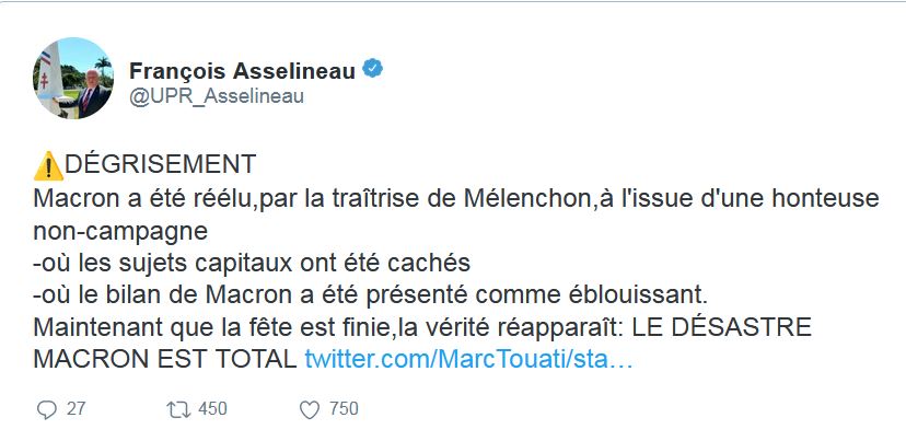Pascale Besse(15) 🇫🇷 @besse_pascale Petit rappel : la réaction de Donald Trump Après le résultat (de vote en France) , il dénonce la fraude ‼️le public français a vu comme moi des incohérences Dimanche dernier !ma question pourquoi MLP est t’elle silencieuse 🤔...