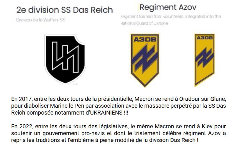 Macron, entre les deux tours des législatives, dans un but clairement électoraliste, se rend à Kiev. Entre les deux tours de la présidentielle de 2017, il se rend à Oradour-sur-Glane. Florian Philippot sur C News (Morandini) n'en parle même pas ! Personne ne fait le rapprochement... Moi, si, pdf en annexe.