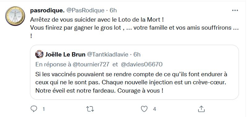 D'autres commenceront à réfléchir à la 4 dose, ils se poseront la question : pourquoi insister avec une injection qui ne protège de rien du tout et qui a des effets secondaires avérés .