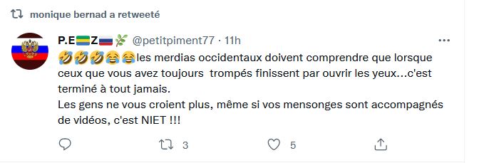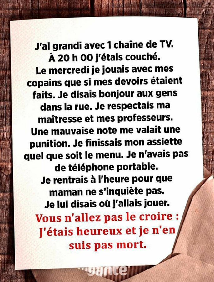Aujourd'hui on est submergés d'informations, trop d'informations tue l'information. Ceux qui sont restés toute leur vie dans le douillet cocon de l'info fabriquée par l'etat ont du mal à en sortir, ils croient dur comme fer toutes les conneries qu'on leur sort , je crois qu'il il va falloir attendre que leur frigo soit vide pour descendre dans la rue .