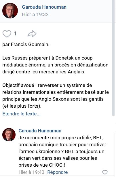 Site de Garouda Hanouman : Les Russes préparent à Donetsk un coup médiatique énorme, un procès en dénazification dirigé contre les mercenaires Anglais.