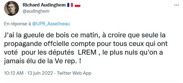 Dumont L.🇨🇵ZOZZ🇨🇵 @L4Dumont · 10 juin « Ce Français qui a travaillé toute sa vie touche 900€, un étranger qui n'a jamais travaillé 830€. Cette injustice, avec Eric Zemmour, nous y mettrons fin ! » @G_Peltier #France2022 #Législatives2022 #JeVoteReconquete