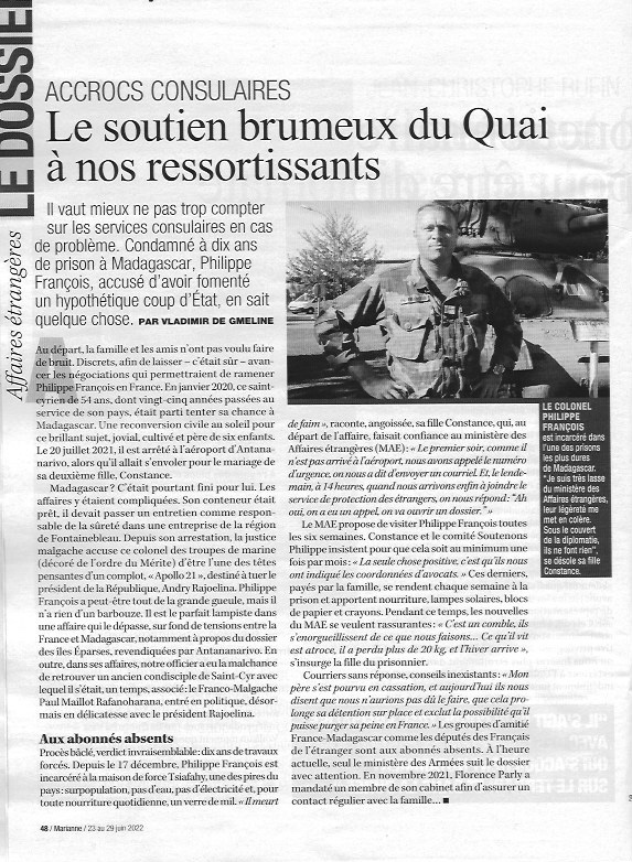 Morel Denis @MorelDenis16 En réponse à @christine_kelly @GeoffroyLejeune et @Valeurs  Depuis le 20/07/2021 de détention Soutenons Philippe ! Philippe François est incarcéré à Madagascar depuis le 20 juillet 2021 pour atteinte à la sûreté de l’Etat et tentative d’assassinat du Président Rajoelina