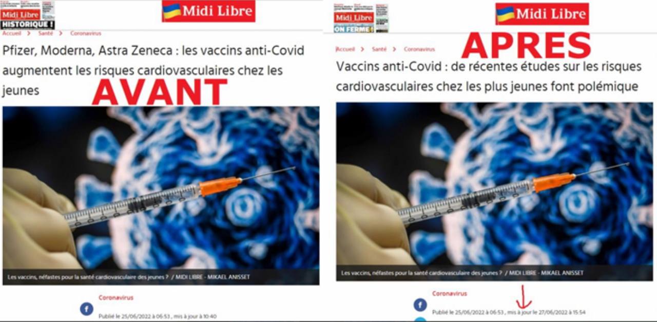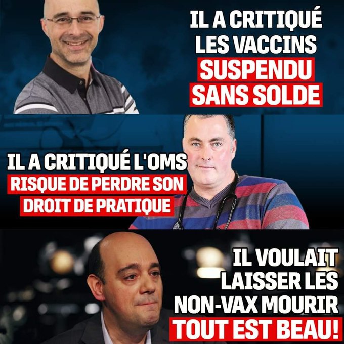 "La prudence imposerait même que, dans tous les pays où ces vaccins contre le COVID-19 ont été commercialisés, tous les lots ainsi «libérés» doivent être retirés immédiatement; et que ces AMM qui ont été accordées devraient être suspendues, voire annulées, de toute urgence jusqu’à nouvel ordre», disent-ils. Les Covidiens de branche sont des membres de secte avec un souhait de mort C’est bien loin des messages provenant de la Maison Blanche, de Donald Trump, d’Anthony Fauci et de la quasi-totalité de la médecine traditionnelle et même de la religion ici aux États-Unis.