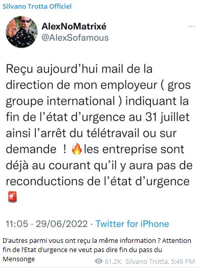 🇫 Témoignage d'un gérant : ''obligés de vous faire vacciner... Pas nous ! " Depuis l'arrivée de notre chère nouvelle première ministre, il y a de fortes chances que le chantage vaccinal refasse surface... Le licenciement ? Est-ce que vous avez conscience que c'est totalement discriminatoire et inégalitaire ? Je suis associé et je suis gérant d'une SARL, donc qui va me licencier si je refuse de me faire vacciner? Je ne suis même pas un employé, du coup je n'ai pas besoin de me faire vacciner afin de continuer à travailler ! Les seules personnes qui sont concernées par ce chantage ce sont les petites gens, les pauvres employés, qui je le rappelle sont dans la grande majorité des Français, mais vous l'acceptez et vous trouvez ca normal !! Les patrons qui ne sont pas obligés de se faire vacciner vont licencier les employés parce qu'ils ne sont pas vaccinés !" Lien 1 (https://www.tiktok.com/@christianlaurentin/video/7114956587634150661?_t=8TaepfyJwDm&_r=1)Rejoignez la Vérité Diffusée https://t.me/VeriteDiffusee