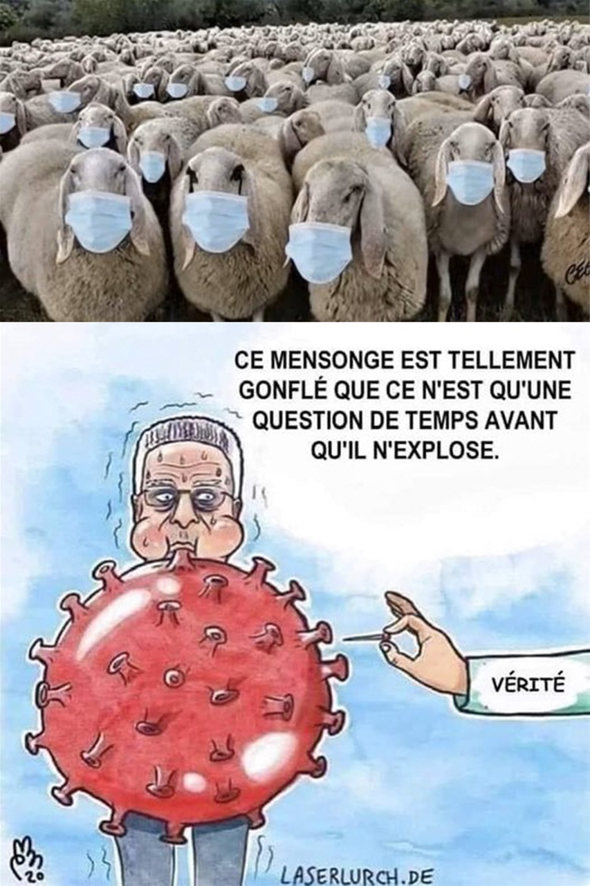 - S'en prend à toutes les cibles faciles : Laibi, la chloroquine, Luc Montagnier, Martine Wonner, les «antivax», Dieu, la religion, etc.