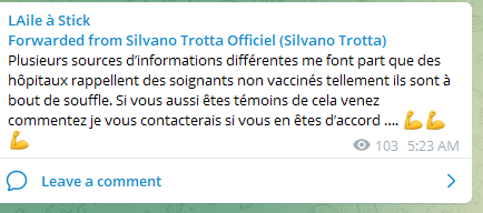 jen doe il y a 3 heures Madame, vous êtes forte, vous êtes courageuse…je sais que c’est difficile je pleure aussi chaque jour du mal qui est fait aux gens. Il va falloir s’accrocher encore car le monde à besoin de médecin comme vous et tout cela n’est pas finit.. espérons que les gens vont se réveiller et vous savez vos confrères qui ne pensent qu’à l’argent bientôt ils n’en auront plus..tout ce qu’ils font là nous précipite dans le chaos… ils vont tout perdre, nous fonçons dans une crise économique sans précédent car ils obéissent... Restez dans la lumière Madame.. ❤️l’important est que vous faites de votre mieux. Vous êtes dans le juste💕