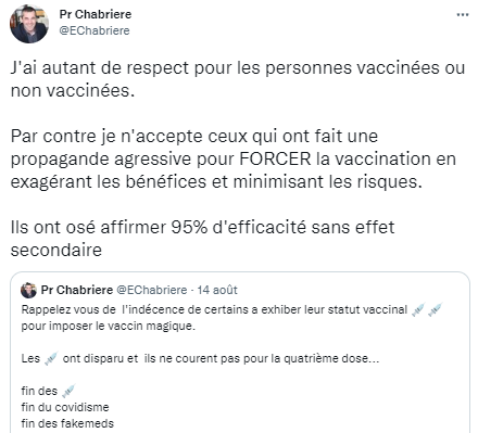 Citer le Tweet patricia chaibriant @PChaibriant · 11 août Selon Bourla, la marque "Pfizer" est un gage de qualité. En vrai faut être complètement givré pour leur faire confiance et confier nos vies à ce labo d'escrocs. Voici la liste des "qualités" de Pfizer par Idriss Aberkane ⤵️