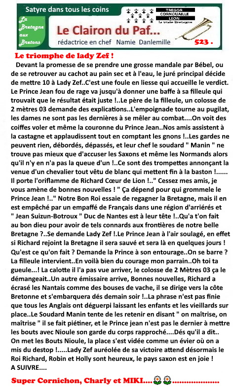 Lady Zeff et Bebel se sont projetés en l'an 1100 dans la fôret de Robin des Bois .Le fourbe prince noir a organisé un concours de beauté pour capturer les amis de Robin . Ici vous serez étonné de voir que le Soudard Manin est complice du Prince noir ...