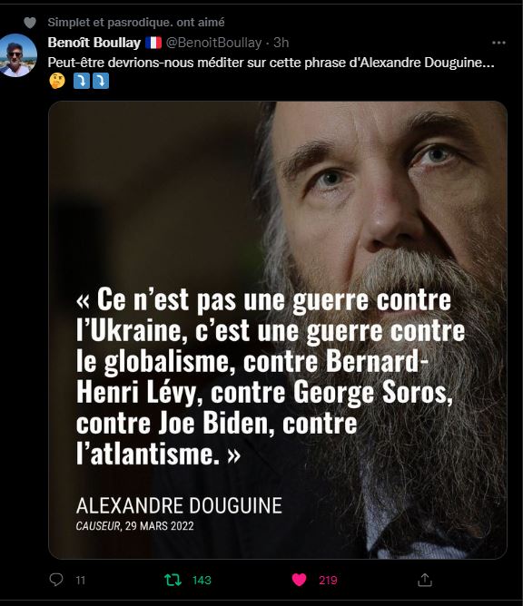 Philiosophe russe francophone etait visionnaire, ici en 1995.L'occultiste Alexandre Douguine annonce en 1995 "que l’avènement du nationalisme Russe sera terrible pour le monde"