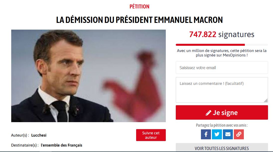 pétition pour la démission de Macron