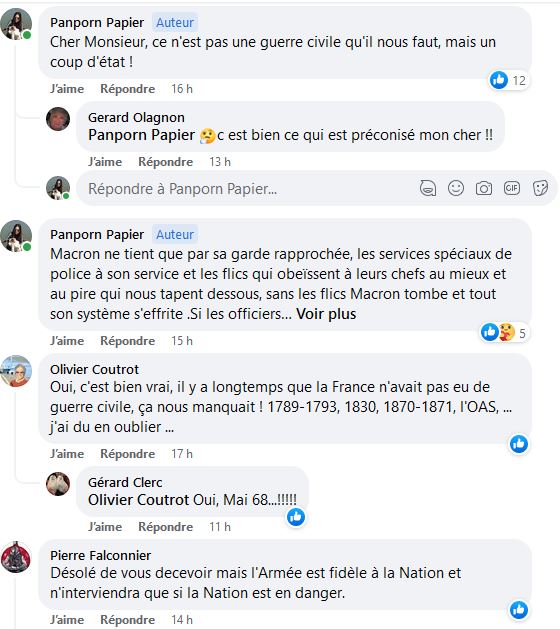 Pierre Falconnier Désolé de vous decevoir mais l'Armée est fidèle à la Nation et n'interviendra que si la Nation est en danger.