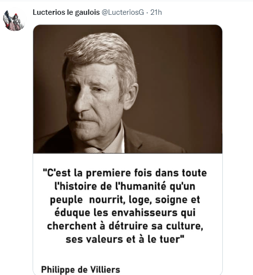 Que dit celui qui nous sert de président de la République ? Il explique que les immigrés arrivent dans les villes pauvres, qui en ont déjà plein, et qu’il faut les répartir autrement : dans les villes riches et surtout dans les campagnes. Il acte donc la politique menée à Callac, et entend en faire une politique nationale. Il acte donc ce que Renaud Camus appelle, sous les insultes de la gauche, ainsi que les procès, « Le Grand Remplacement ». Après avoir chassé les Français des zones périphériques des grandes villes, il entend leur imposer la présence de ceux qui ont envahi notre pays depuis trente ans, avec la complicité de nos dirigeants politiques, et qui, trop souvent, ont construit des Territoires perdus de la République, voire de la France. La seule différence entre Macron et Mélenchon, c’est que l’un parle de transition démographique, et l’autre de Créolisation. C’est exactement le même combat. Il ne vient pas à l’idée de Macron, comme le fait Viktor Orban, de proposer aux Français les avantages d’une politique familiale, et d’encourager les citadins à s’installer à la campagne, par des mesures incitatives. Tout est fait, comme à Callac, pour aider l’étranger, souvent un envahisseurs porteur des codes d’une autre religion, et d’une autre civilisation, et de laisser crever les Français.