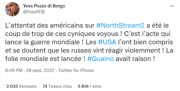 Paul-Marie Coûteaux @pmcouteaux Depuis 6 mois, la propagande anti-russe est grotesque. ( Cette outrance révèle d’ailleurs le fin mot de l’affaire : après avoir dominé l’Europe de l’Ouest puis l’Europe centrale, les Etats-Unis entreprennent à présent de soumettre la Russie. Objectif Sibérie ).