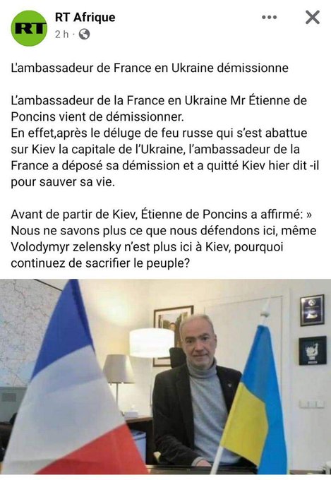 Ce que je ne comprends pas , c'est que la gauche et toute la classe politique française jusqu'à Marine Le Pen - à part F. Asselineau - ne dénoncent pas le régime néo-nazi et corrompu de Kiev , ni les exactions nazies sur la population russophone du Donbass depuis 2014, ni l'adhésion claire aux méthodes nazies des politiques ukrainiens en place aujourd'hui. Toute l' Europe et l' Amérique envoient des armes aux nazis de Kiev et traitent Poutine de malade mental.
