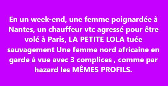 Première fois de ma vie que je relaie l'existence d'une cagnotte. Un proche de la famille de Lola a ouvert une cagnotte sur un site dédié, afin d'aider ses parents à gérer les dépenses colossales liées à un enterrement. C'est une famille française modeste, des petites gens, le père travaille comme gardien d'immeuble. Faites suivant vos moyens et suivant votre conscience. Merci de relayer vous aussi même si vous ne donnez pas, l'important est aussi que le lien tourne le plus possible.