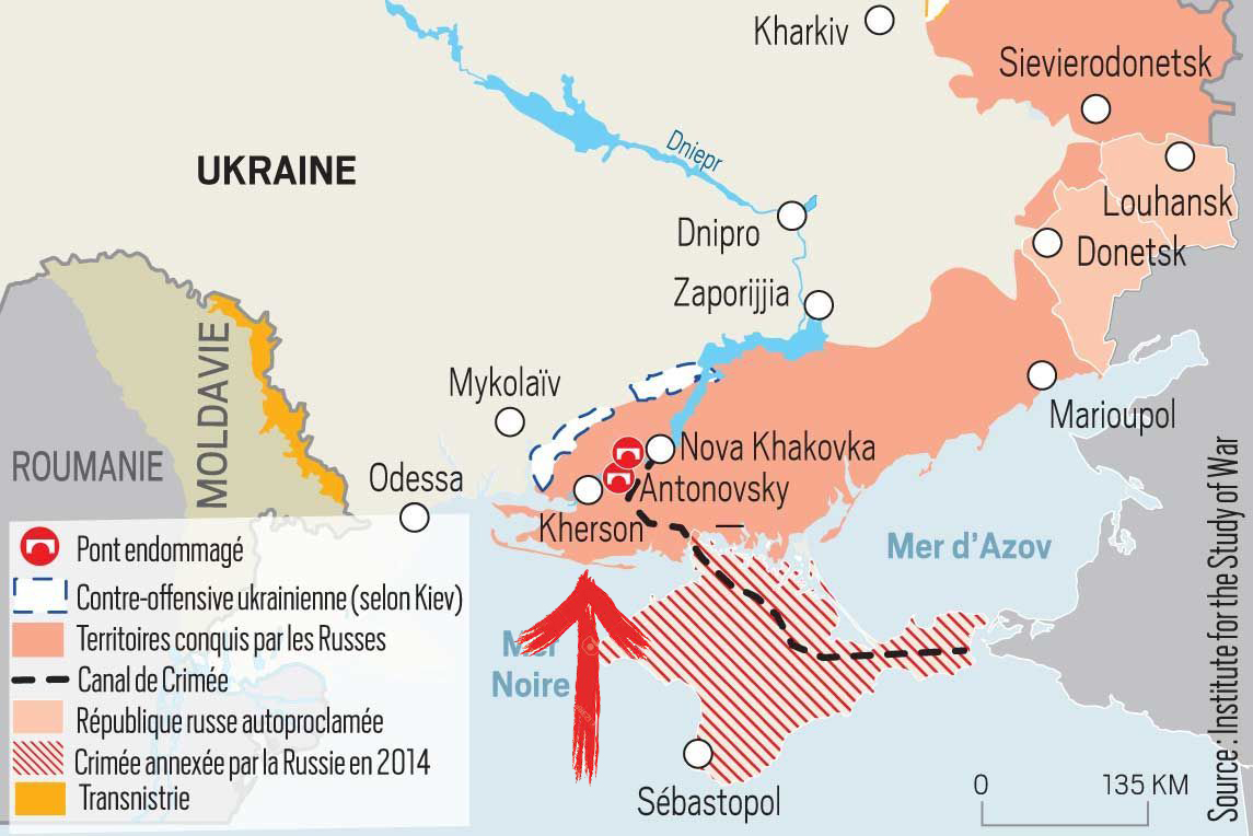 La menace qui pèse aujourd'hui sur les populations de Kherson est double: à la fois l'offensive potentielle des forces ukro-atlantistes qui ne manqueront pas de bombarder la ville, et d'autre part la destruction possible du barrage hydro-électrique de Kakhovka qui déclencherait une inondation du secteur (voir § plus bas)