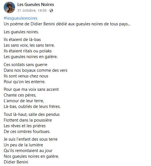 Nous sommes fiers de rencontrer des gens comme toi qui nous donnent du baume au coeur , bon courage et longue vie aux mineurs et aux porions .."